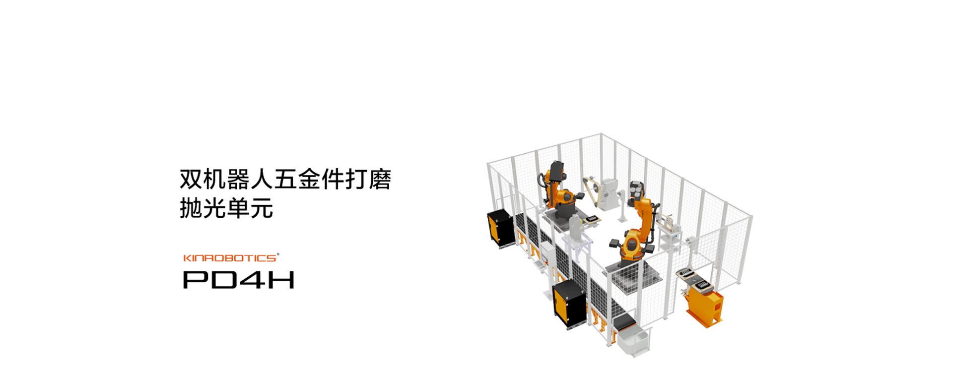 双机器人五金件打磨抛光单元是针对小型的五金件(如把手),利用机器人带夹持工具对五金铸件的毛刺飞边的打磨和抛光而专门设计的产品。该单元主要由2 台机器人及砂带机和抛光机构成 ,转台进行变位协同,输送带进行成件传送,全自动化完成产品的打磨抛光过程,是集标定、生产、检测于一体,具有高灵活性、高效率、高柔性、低成本等特点。由于双机器人的有效使用,使打磨和抛光可并行工作。工件最大重量30kg。